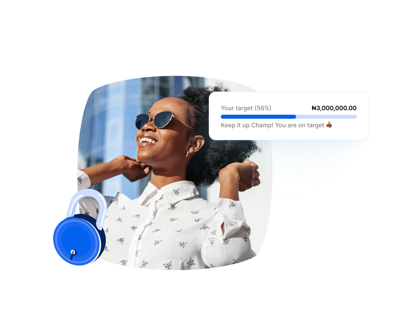 Create a locked savings plan with a minimum deposit of ₦1,000, lock funds away for a fixed period of time, top up and roll over anytime. Earn up to 16% per annum.